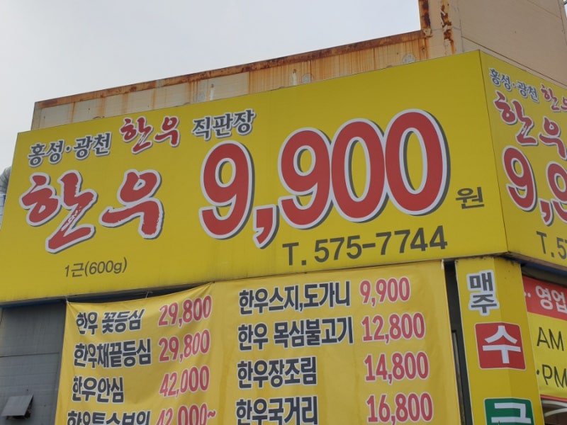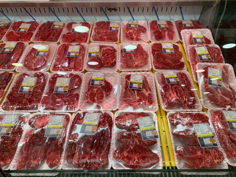 일단 직판장은 들어가기 전에 식육코너에서 고기를 직접 골라 들어가면 된다.
