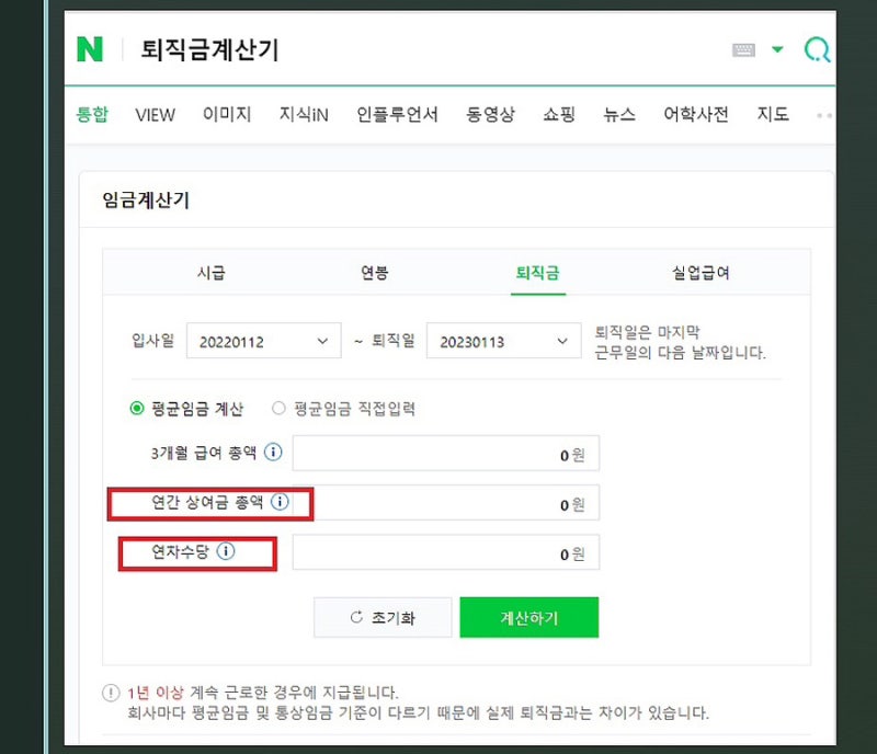네이버 퇴직금 계산기를 구입한 퇴직금 계산기의 세전 금액