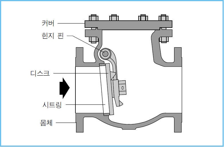 청동 스윙 체크 밸브는 배관 내 유체를 역류 방지하는 밸브입니다
